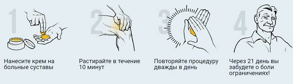Крем-мазь наносится на область локализации боли массирующими движениями в течении 10 минут. Важно, чтобы крем полностью впитался.