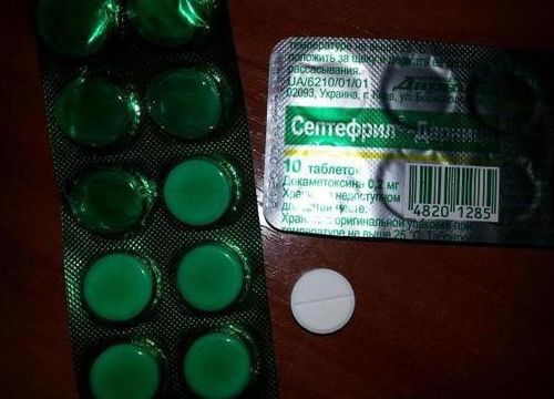 Данное средство использовалось на протяжении нескольких десятилетий. Производится оно исключительно в Украине и назначается довольно редко, так как на рынке появились новые, более эффективные и безопасные препараты для лечения респираторных заболеваний горла и полости рта. Основным активным компонентом является детаметаксин, что делает его подходящим для послеоперационной санации.